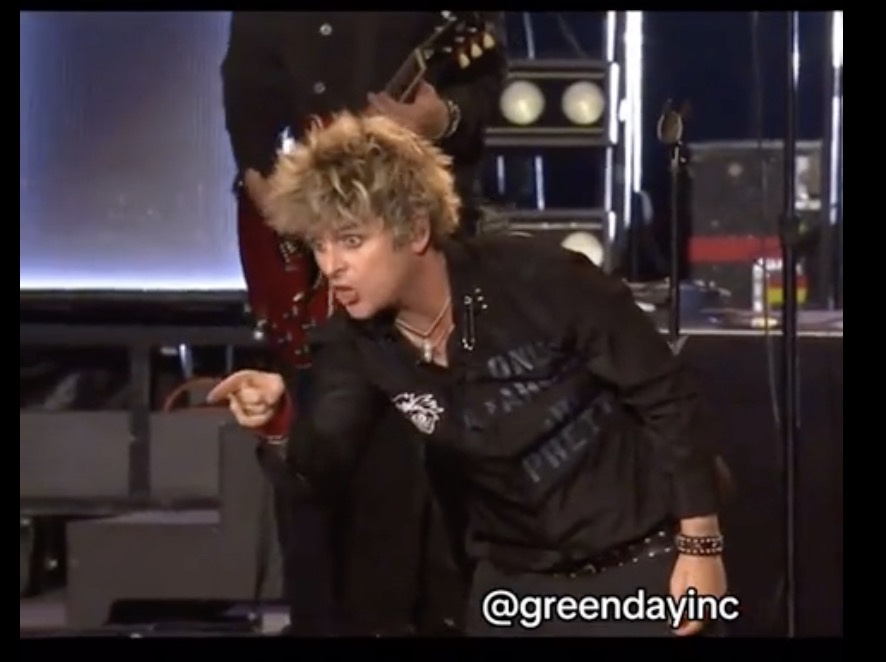 ドイツで開催された【ハリケーン・フェスティバル】でのグリーン・デイのステージのライブ配信をファンが共有した映像では、ビリー・ジョーがバンドの楽曲「Jesus of Suburbia」のコール&レスポンスの部分を歌いながら、観客の中の誰かを直接指差し、中指を立てているように見える。