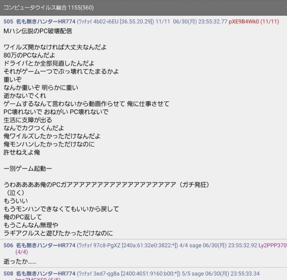 ワイルズが原因ならワイルズでPC破壊されたって人がわらわら湧いてくると思うんやがどうなん?