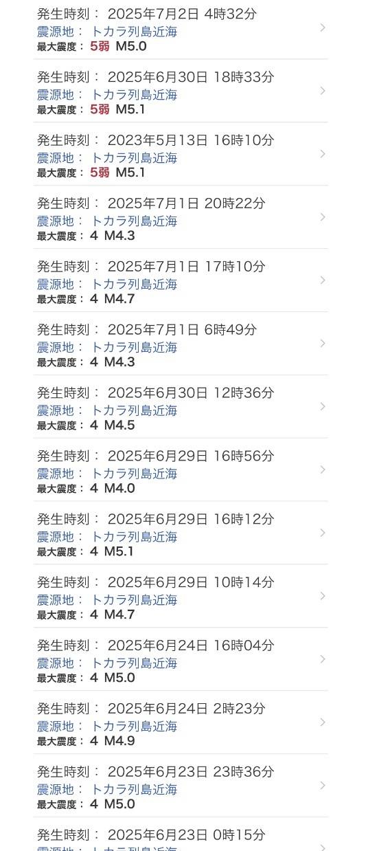 トカラ列島、震度5弱が3日のうちに2回くる…何が始まるんです?