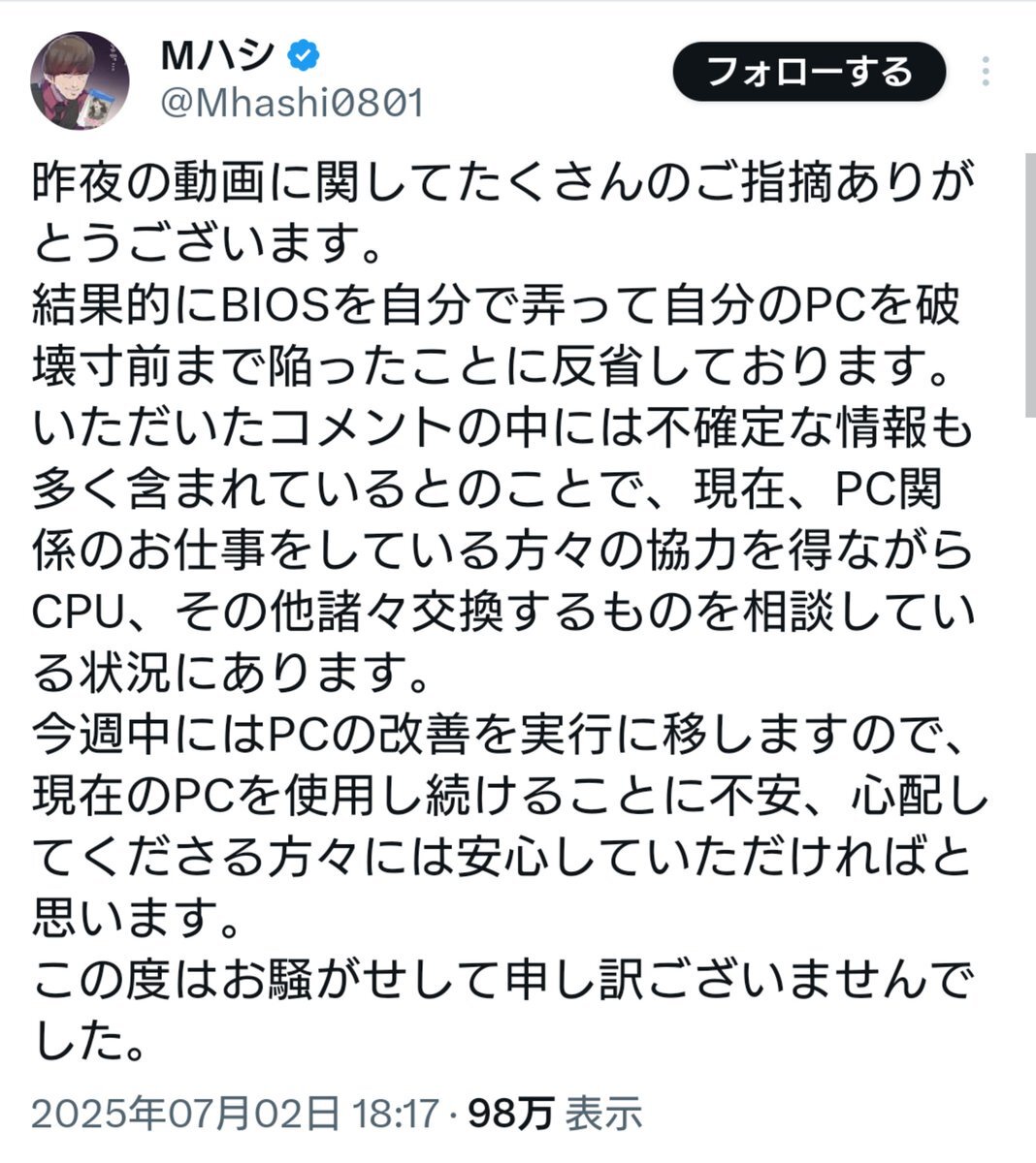 BIOS勝手にいじって自滅って擁護できる余地なくね?