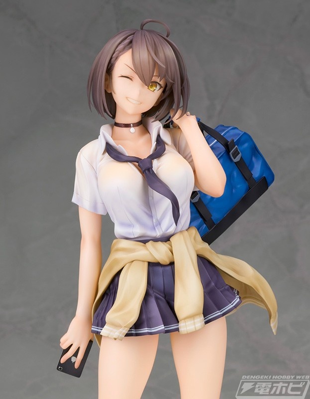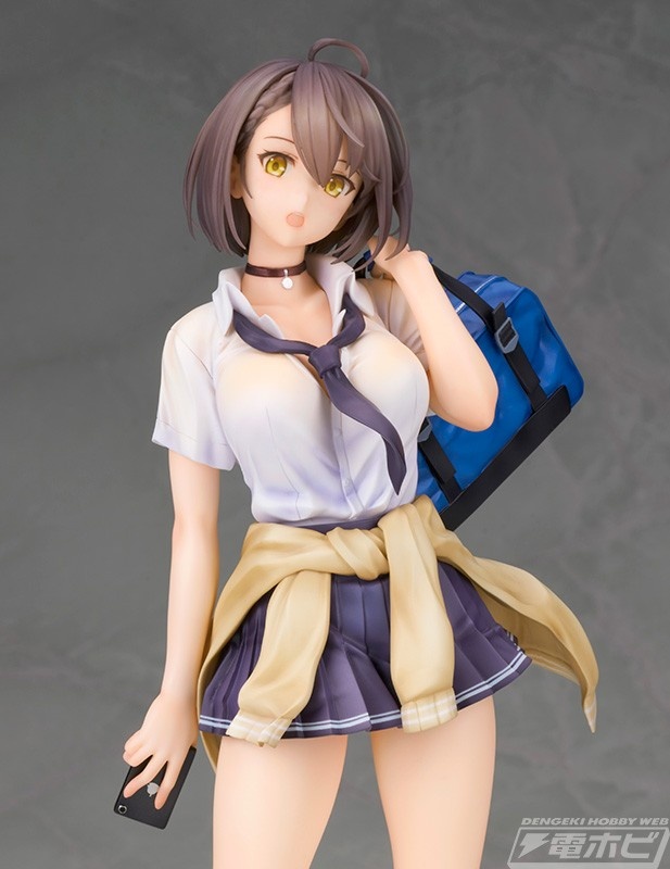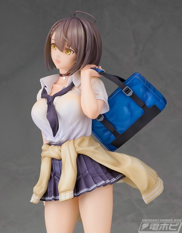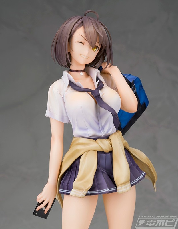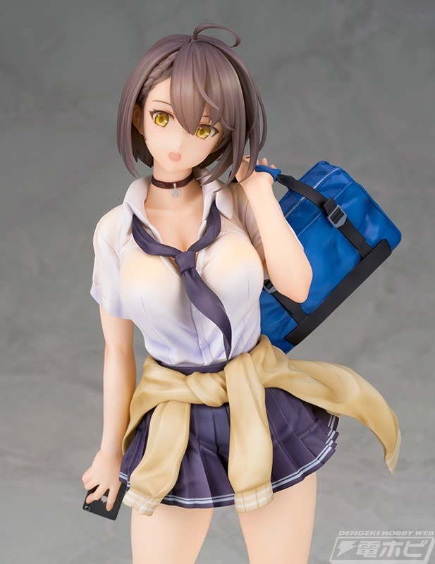 どこかあどけない表情が可愛らしく、普段のしっかり者な彼女とのギャップが魅力的な本アイテム。抜群のプロポーションもばっちり造形され、柔らかそうな胸元や引き締まった足からは健康的な色気を感じさせます。また、クリアパーツを使用した髪の毛束感や、ふわりと広がるセーターが軽やかさを演出。シャツの透け感やバッグなどの小物類も丁寧に再現されています。