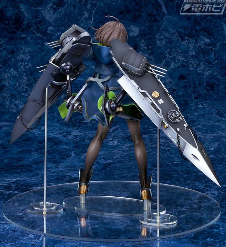 凛としたボルチモアの表情がステキ! 軽やかに流れる髪はクリアパーツで再現されているほか、身体の正面が空いた特徴的な衣装から覗く引き締まったボディラインや、衣装の細やかなシワの表現なども丁寧に表現されています。また、艤装は取り外し可能となっており、艤装を外した時用の交換用右腕パーツも付属します。