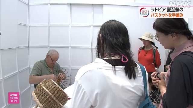 万博 バルト館 ラトビア夏至祭のバスケット作り披露