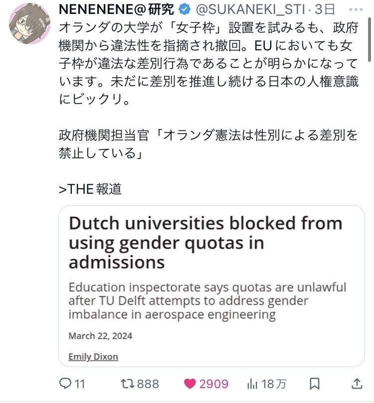 EUでも女子枠は「違法な差別」として扱われるという事実