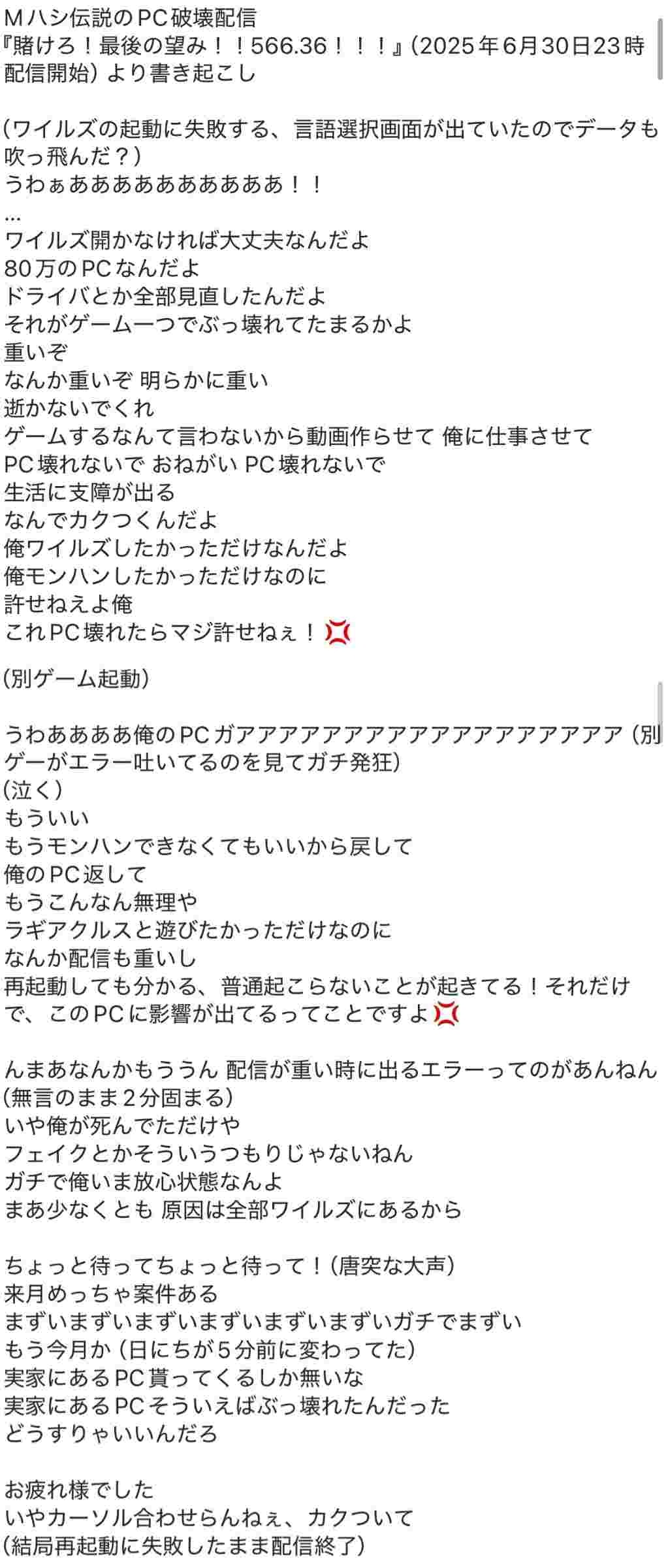 2年かけてモンハンの公認配信者になった男、ワイルズに80万円のPCを破壊され公認制度も破壊される