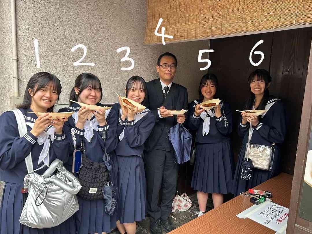 - 男教師一人に女子生徒多数のホットドッグ写真