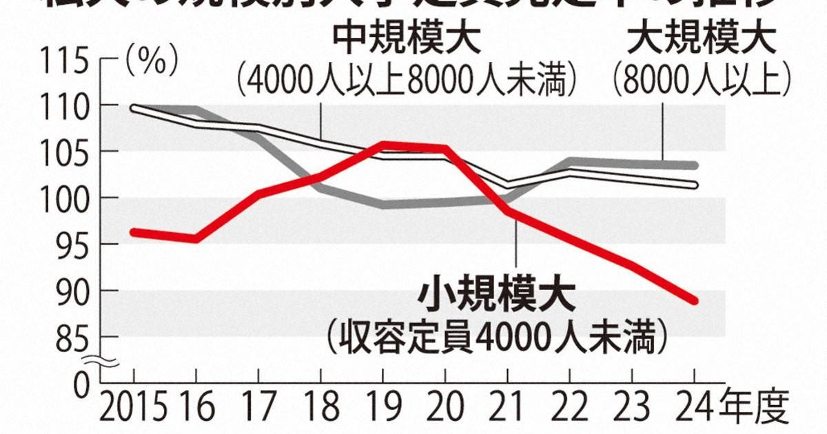 私学事業団によると、24年度の小規模私大の定員充足率は平均で88・86%だった。大学別の充足率は公表していない。