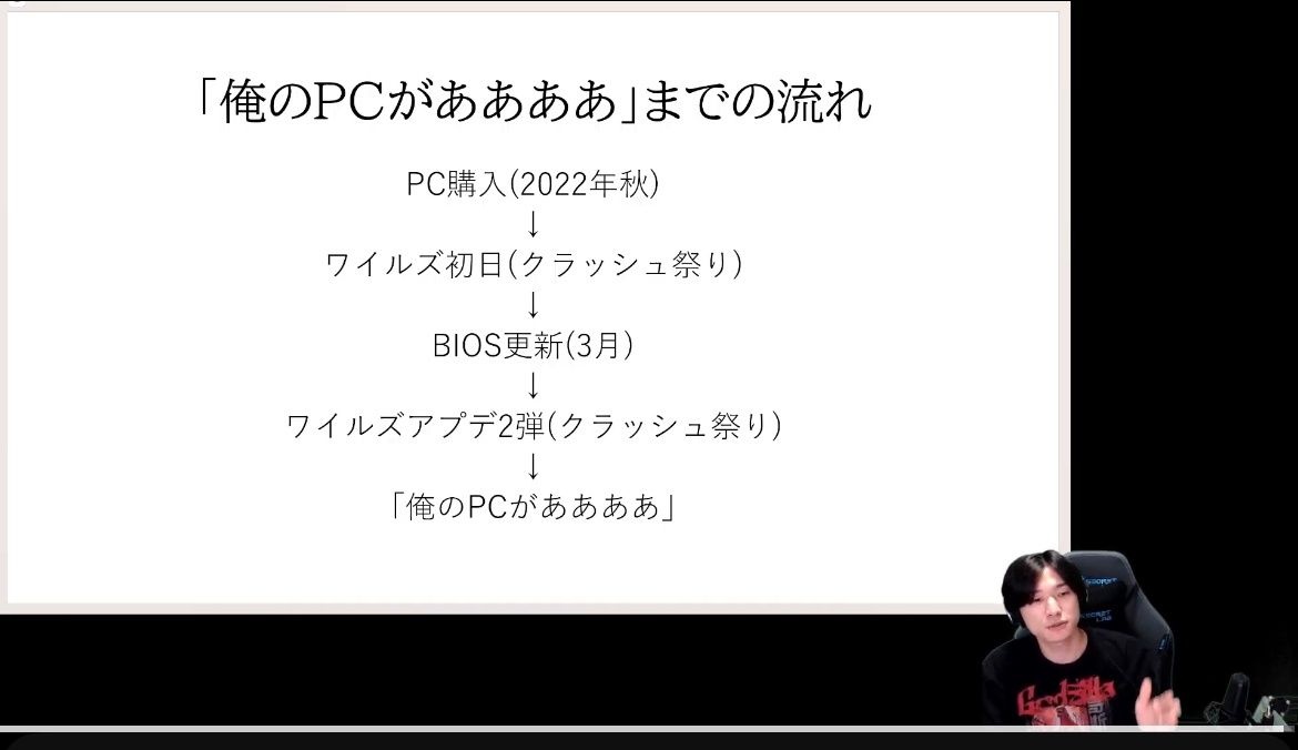 件のクラッシュ後の謝罪風被害者ヅラ動画もPC無知者がダラダラ言い訳してる内容だったな