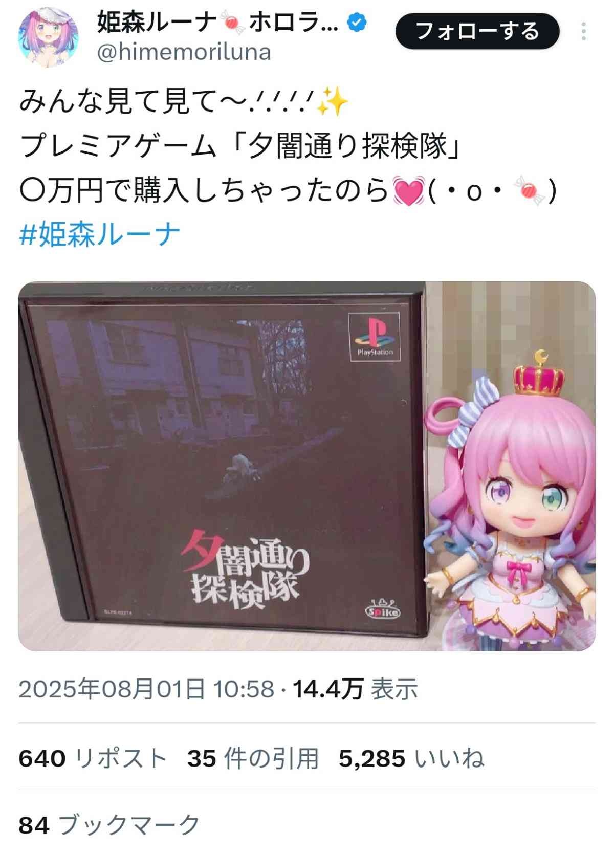 【画像】人気Vtuberさん、超高額レトロゲームを購入www