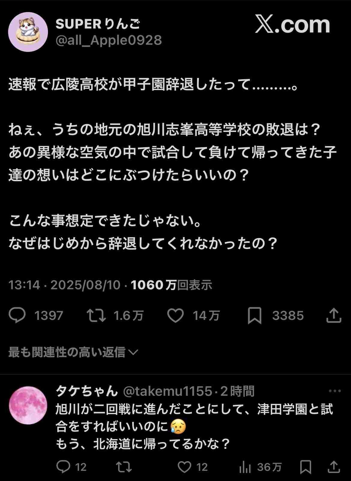 騒動の責任は旭川志峯にもある - 37 : 2025/08/10(日) 17:24:50.65 ID:q8DVth+Y0