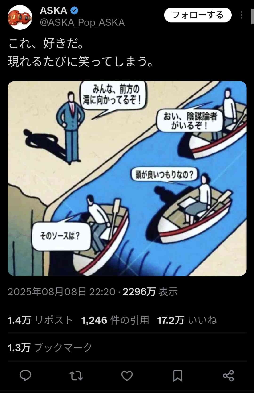 【安倍】ASKA「この風刺画好きだ。笑ってしまう」感想よろ