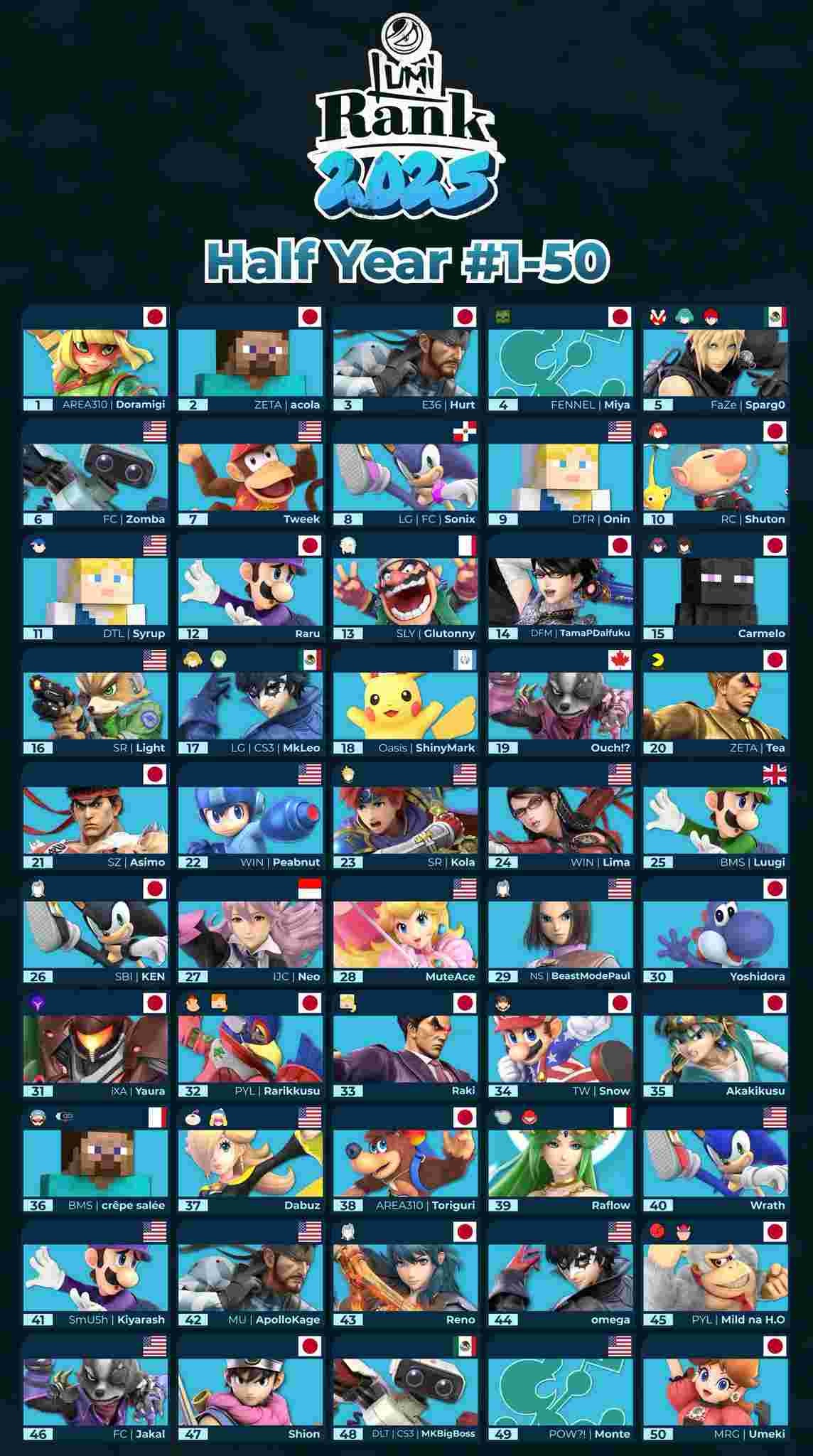 スマブラの世界ランキング、マイクラのキャラに独占されて終わるw