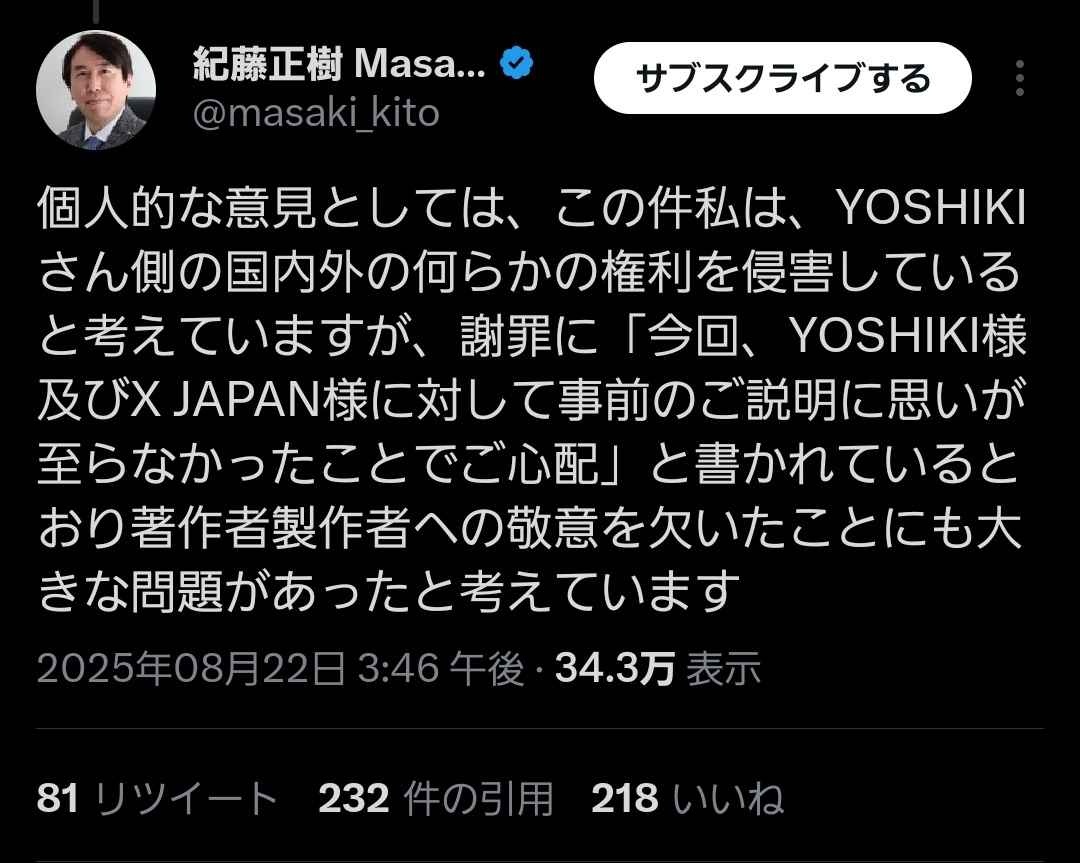 これYOSHIKIの側に付く人は生成AIとかもリスペクトがないから駄目って感じ?