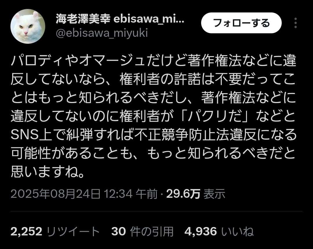 著作者人格権とパロディ、オマージュの線引きで