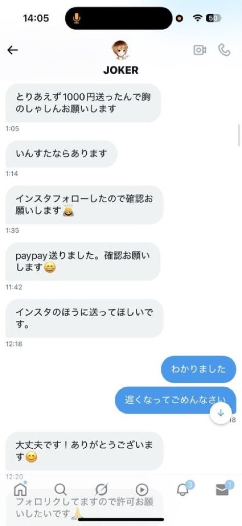 - やりとりのスクショは女が載せたのか?