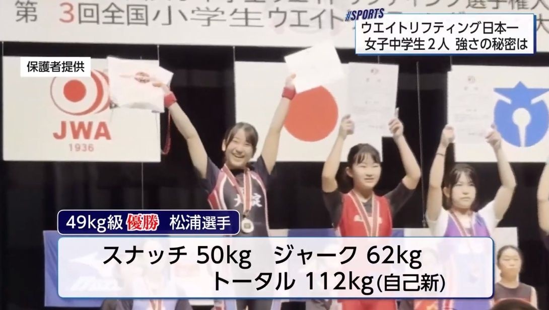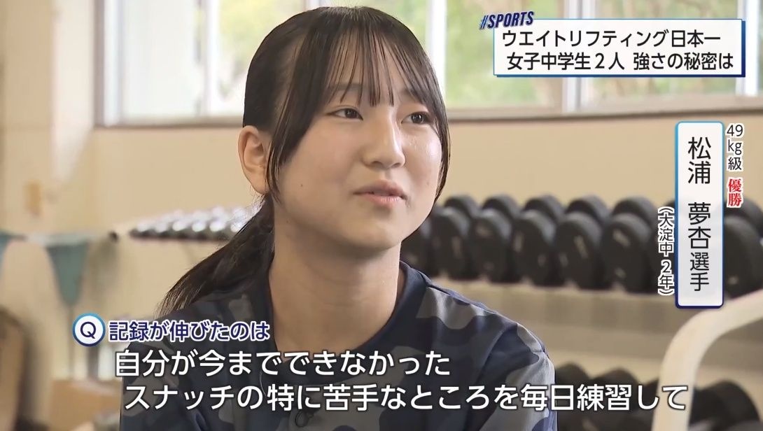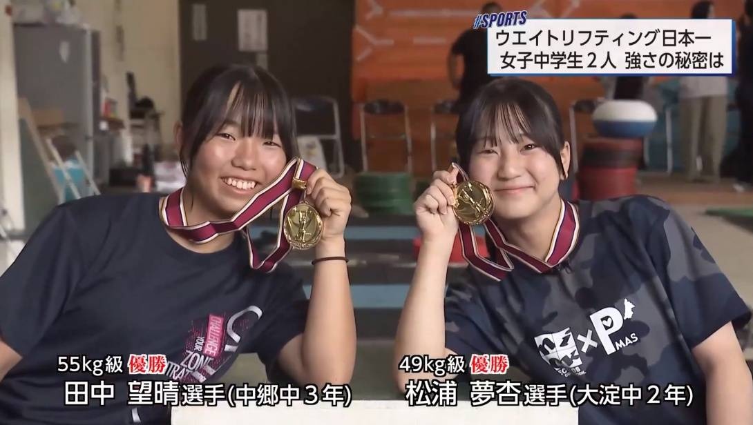 7月、茨城県で行われた中学生のウエイトリフティング全国大会で優勝したのがこちらの2人。松浦夢杏選手と田中望晴選手です。