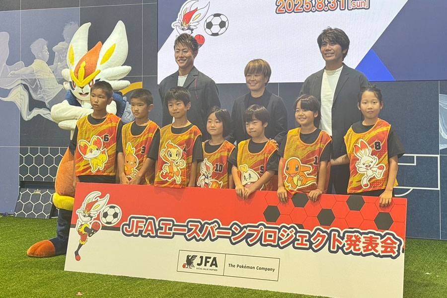 日本サッカー協会(JFA)は8月31日、株式会社ポケモンとともに東京ドームシティ内「blue-ing!」で「JFAエースバーンプロジェクト発表会」を開催した。サッカーに取り組む子どもたちの成長をともに応援する新たな取り組みを発表し、株式会社ポケモンがJFAの新たな「JFAソーシャルバリューパートナー」に就任することも明