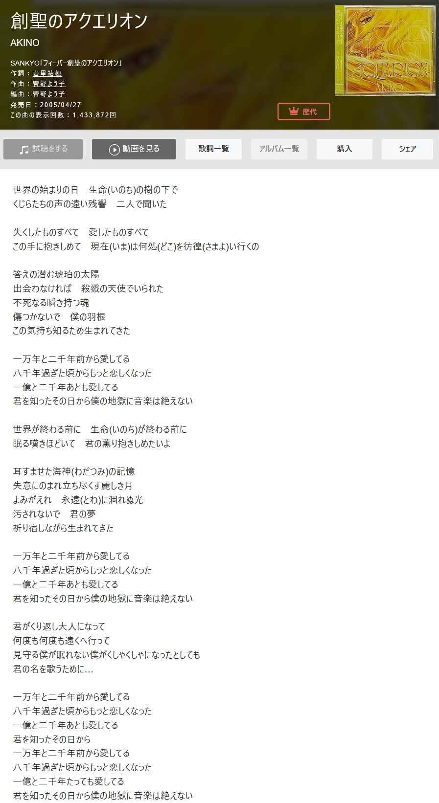 アクエリオンの「一万年と二千年前から前から愛してる、八千年過ぎた頃から もっと恋しくなった」って歌詞凄くね??