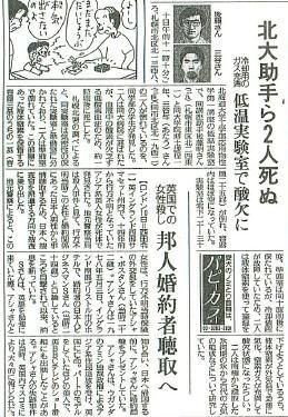 同講座助手???さん(二五)(札幌市東区北????)と同大学院?士課程一年三谷与(あたう)さん(三四)(同士北区尤????)の二人が倒れているのを、同学部の学生が発見した。