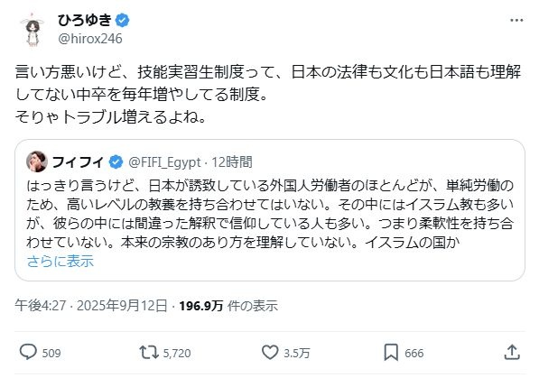 ひろゆき「技能実習生制度って、日本の法律も文化も日本語も理解してない中卒を毎年増やしてる制度」