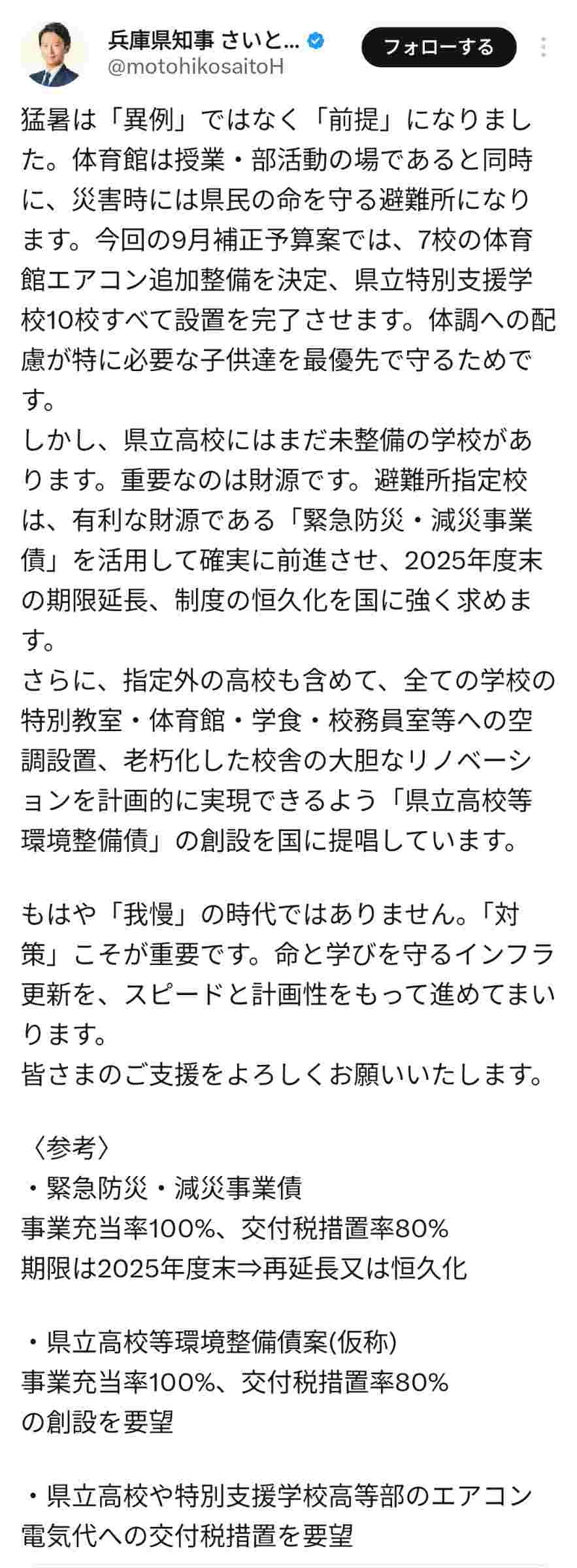 兵庫県斎藤知事、補正予算で県の特別支援学校すべてにエアコンを設置してしまう…