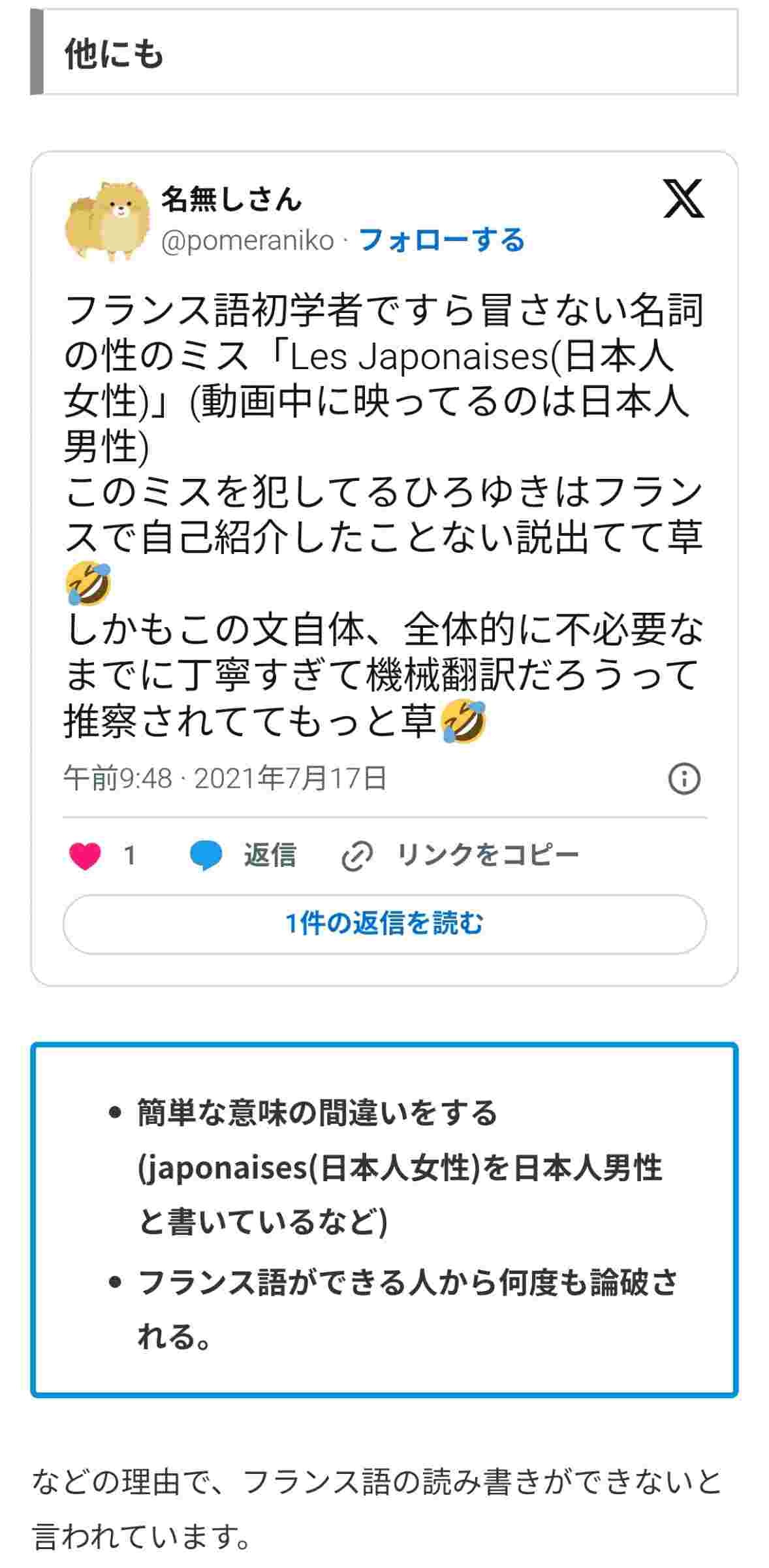 でひろゆきはフランスの法律とフランス語理解できるん?