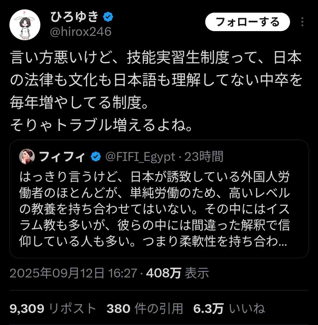 ​ひろゆきは「技能実習生は日本の法律も日本語も理解できない」と言うけど、それは彼らのせいじゃなくて、そもそもそういう人たちを受け入れてる制度に問題があるってことでは?