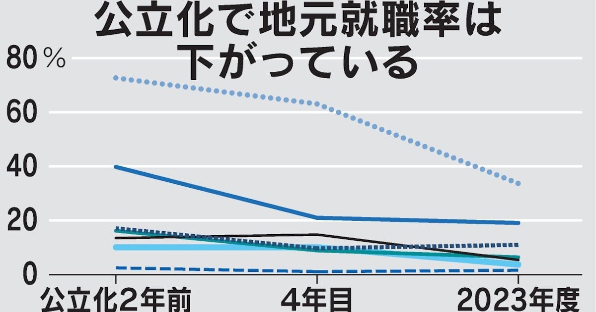 私立大学の公立化、8割で地元就職率低下 学費下がり地域外から入学増
