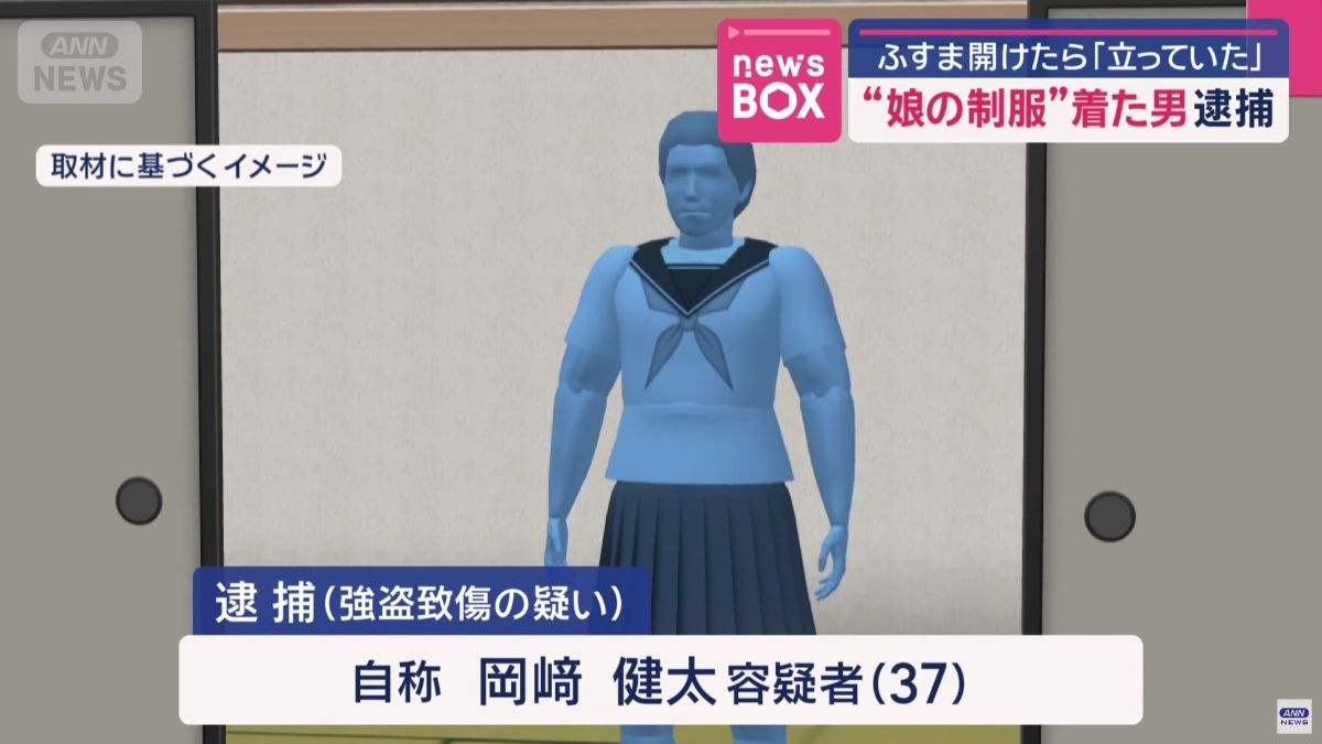 目覚めたら娘の学校の制服を着た男と鉢合わせ 父親が男を取り押さえる 岡崎 健太(37)逮捕