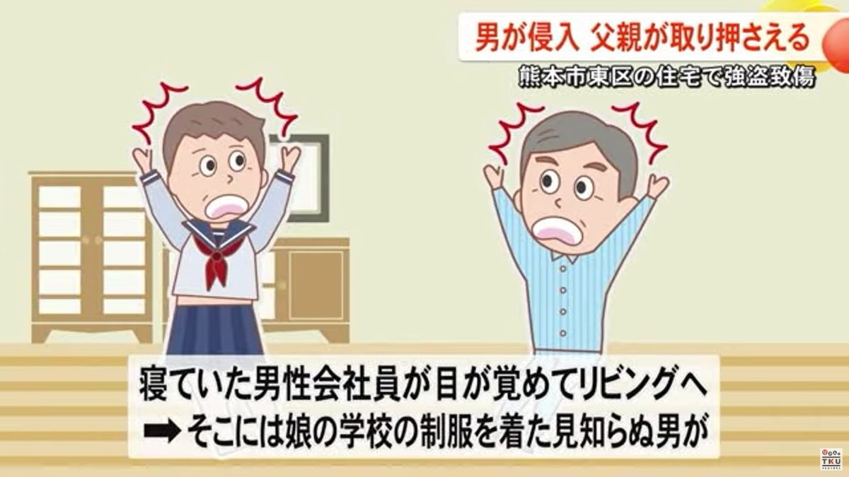 熊本市東区の住宅に男が侵入し、女子生徒の制服を盗もうとして、生徒の父親に取り押さえられました。