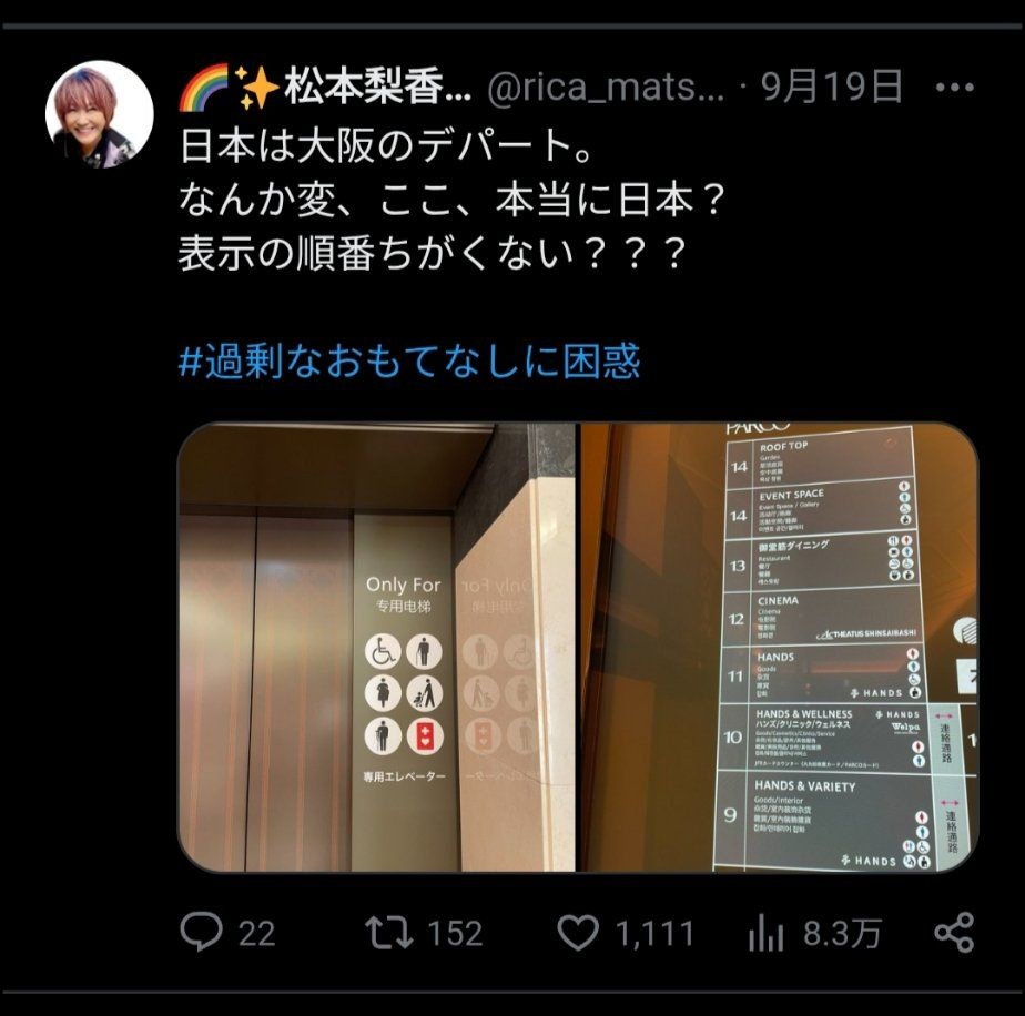 ハッシュタグ過剰なおもてなしに困惑の時点でその言い逃れは不可能だろ - 121 : 2025/09/24(水) 16:12:21.36 ID:9XZF+3v10