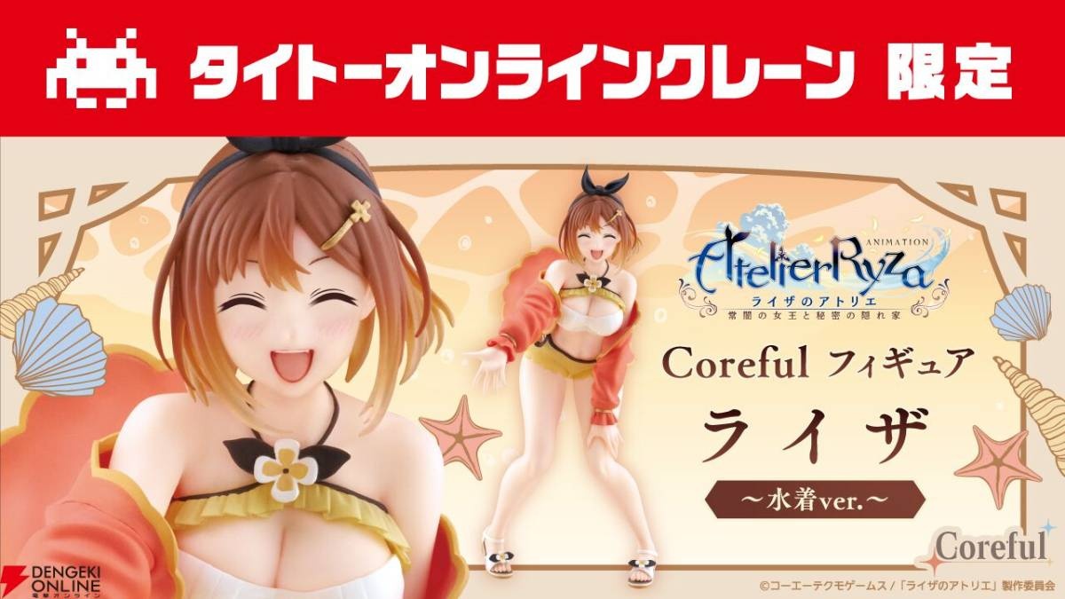 ライザが水着姿でタイトープライズの人気シリーズ“Coreful(コアフル)フィギュア”に登場。ライザらしい太陽のような笑顔と涼やかな肌色部分を堪能できる逸品となっています。『タイトーオンラインクレーン』ではニッコリ顔の限定版も展開中!
