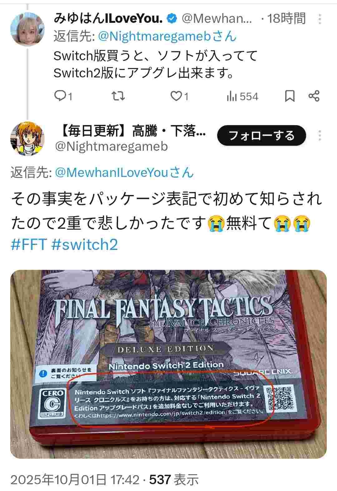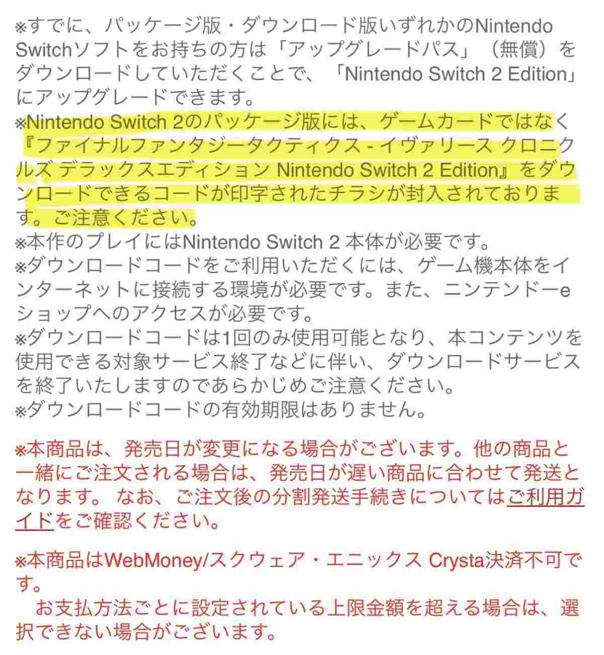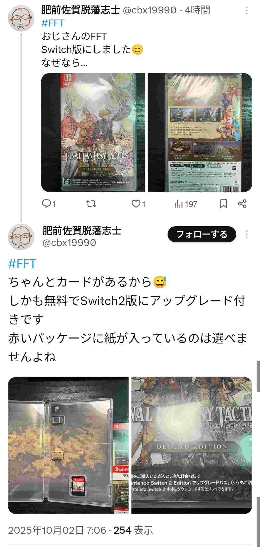 FFTのパッケージ版(Switch2エディション)を購入した人たち「ウッキウキで開封したら紙1枚しか入ってない。何の為のパケ版だよ」と激おこ