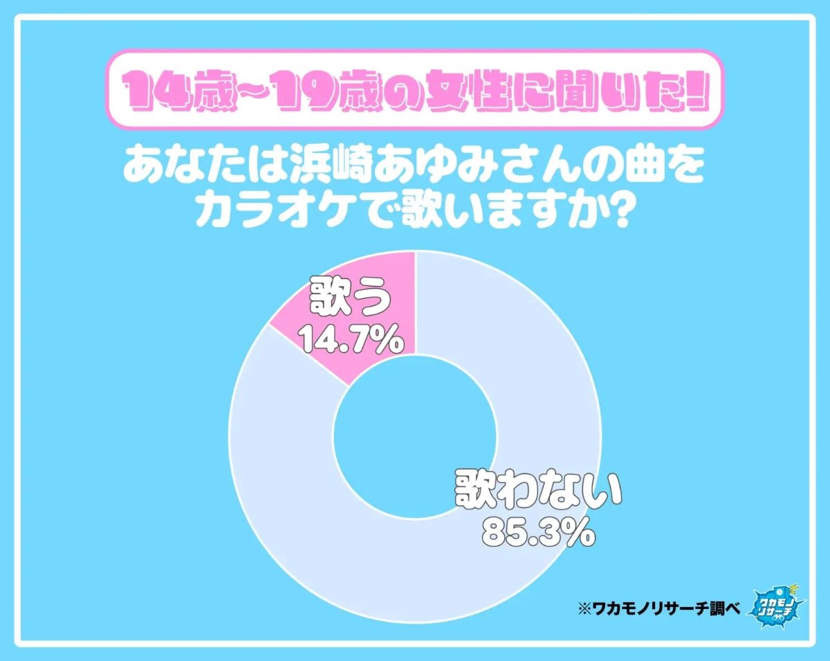 14歳~19歳の女性の85.3%「カラオケであゆの曲を歌わない」と回答
