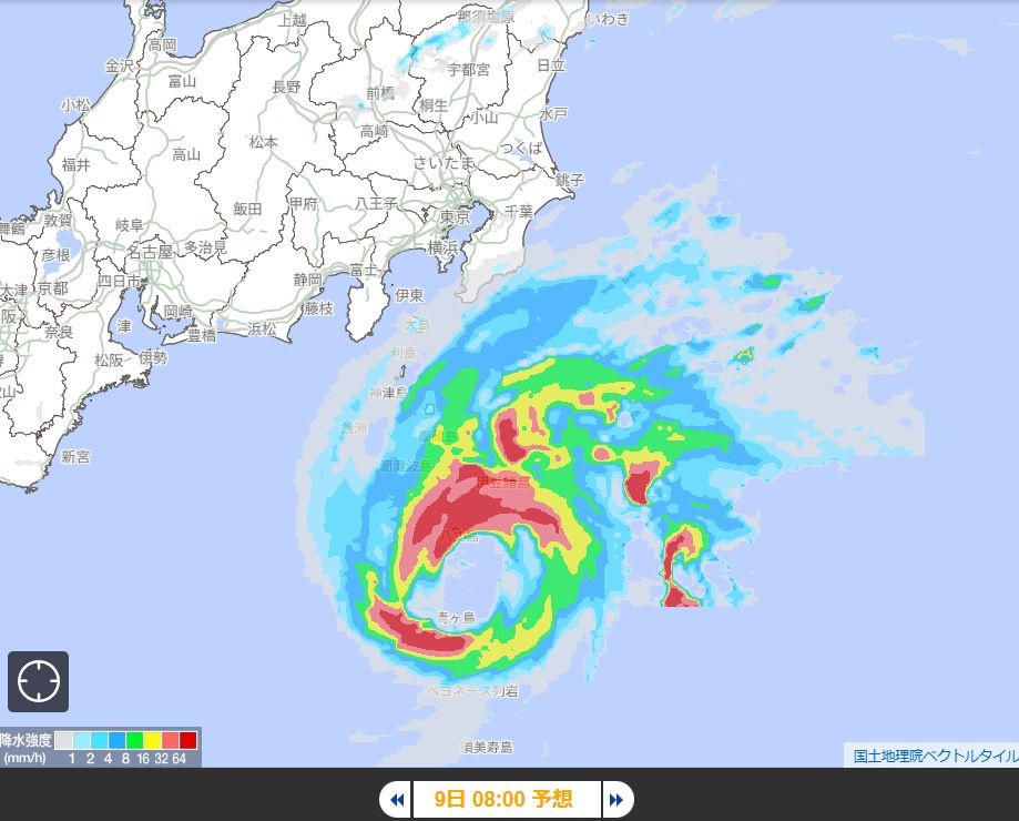 また、八丈島では9日夜までの降水量が300mmを超えると予想され、発達した雨雲が停滞する場合はさらに雨量が増えることも考えられます。土砂災害の発生にも警戒が必要です。