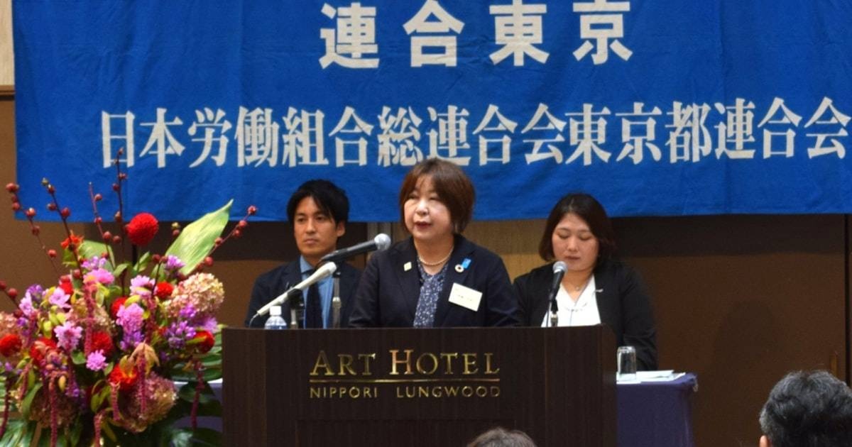大会には東京都の小池百合子知事、地域政党「都民ファーストの会」の森村隆行代表も出席。小池氏は連合東京が要望し、4月に施行された都の顧客による迷惑行為「カスタマーハラスメント(カスハラ)」防止条例について言及し「条例を実効性のあるものにしていく」と語った。