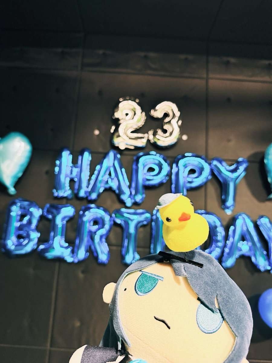 「5周年のお祝い本当にありがとうございました!あのうっせぇわのガキンチョは、ついに23歳になってしまいました!!!! 立派な大人だねと、私を厳しい目で見てください。自立しなければ、いけませんので。 おめでとうありがとうございます!!」と、「23 HAPPY BIRTHDAY」の飾り付けをバックに、アヒルを頭に乗せたAdoのぬいぐるみ写真をXに投稿している。