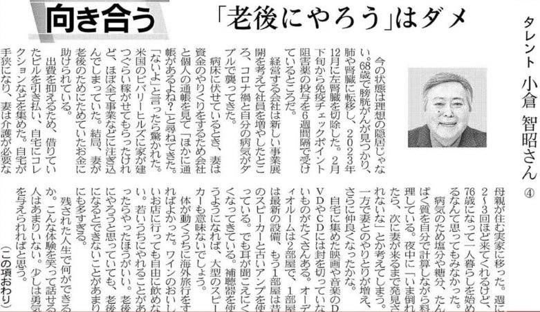 小倉智昭さんの遺言「『老後にやろう』はダメ。若いうち、身体が動くうちにやっとけ。音楽や映画鑑賞すら満足にできなくなる」
