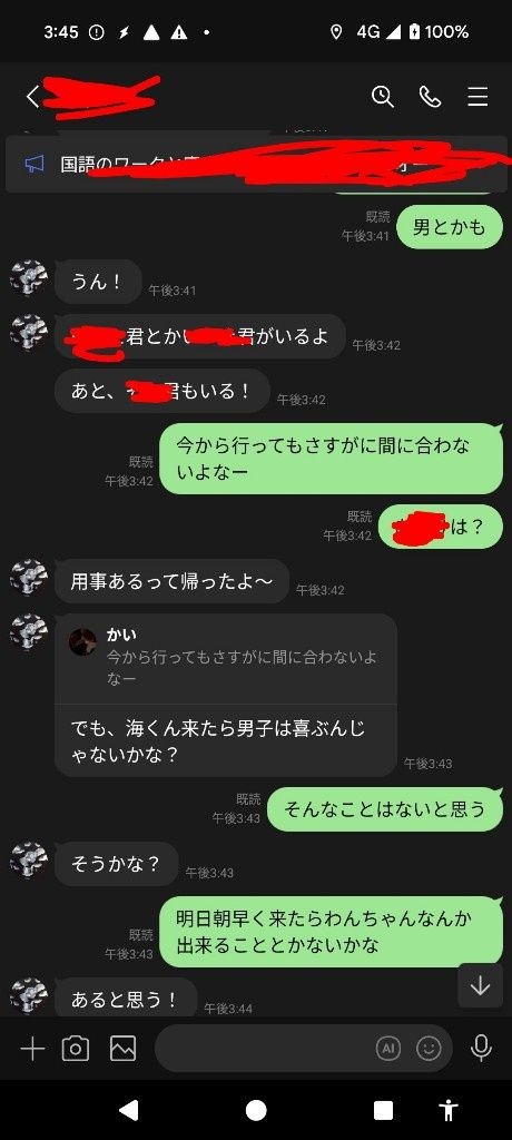 今頃お前抜きのクラスLINEが続々できあがってるぞ - 6 : 2025/11/06(木) 15:27:40.586 ID:qInHehTy0