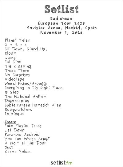 Radiohead – live Madrid 2025-11-07レディオヘッド(Radiohead)は7年ぶりのツアーでは毎晩セットリストを変更しており、3日目の11月7日スペイン・マドリード公演では、2009年以来16年ぶりに「Just」をライヴ演奏しました。