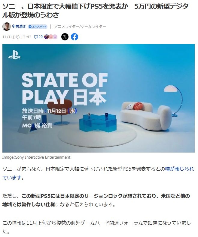 過去にも機能カットされた廉価版のローカルモデルを一部地域で出した例はあるから出してもおかしくはない - 31 : 2025/11/11(火) 14:43:47.92 ID:CQGOLPvf01111