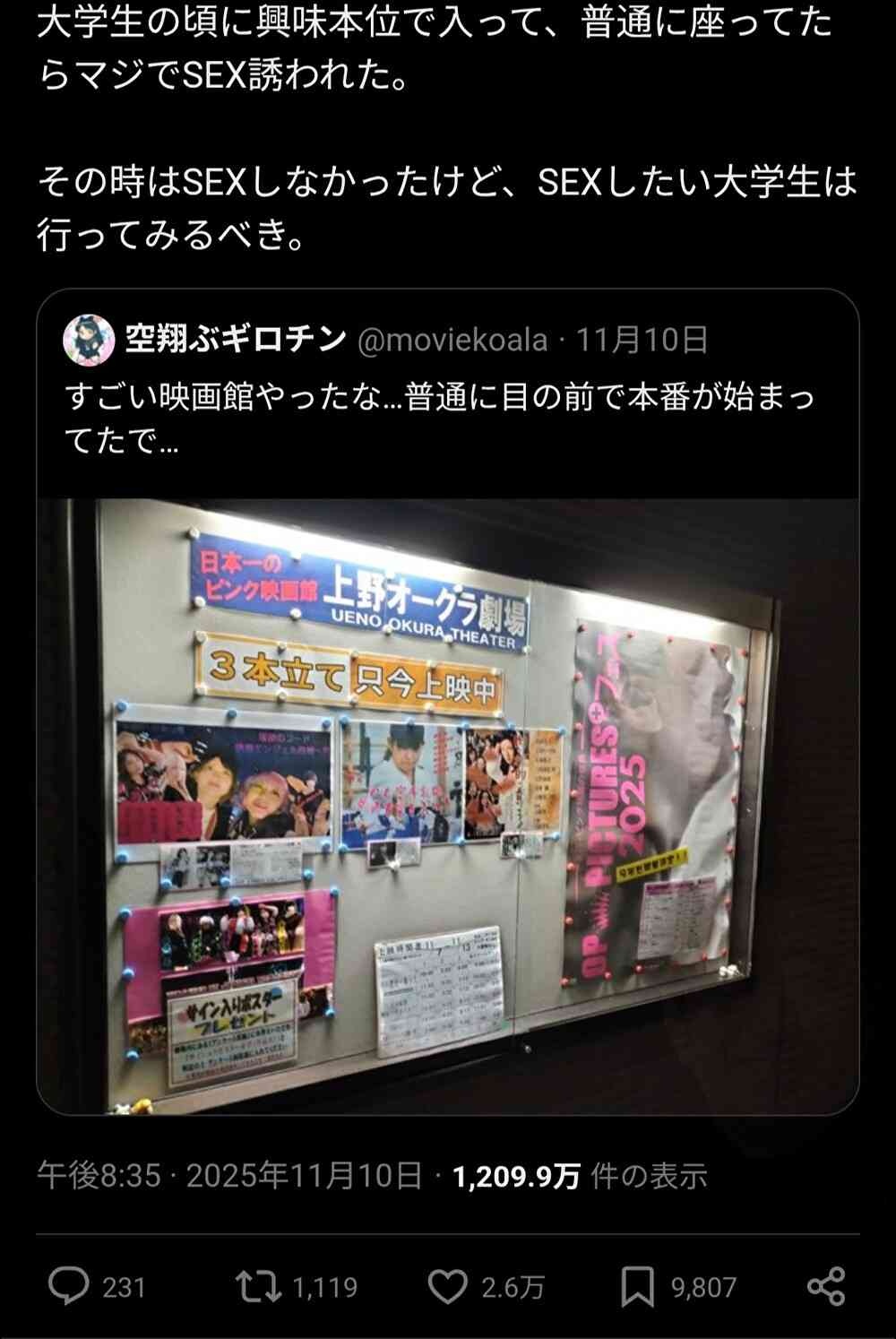 このツイートは本番に驚いたんではなくマナー無用の映画館の環境に驚いてるってわけ