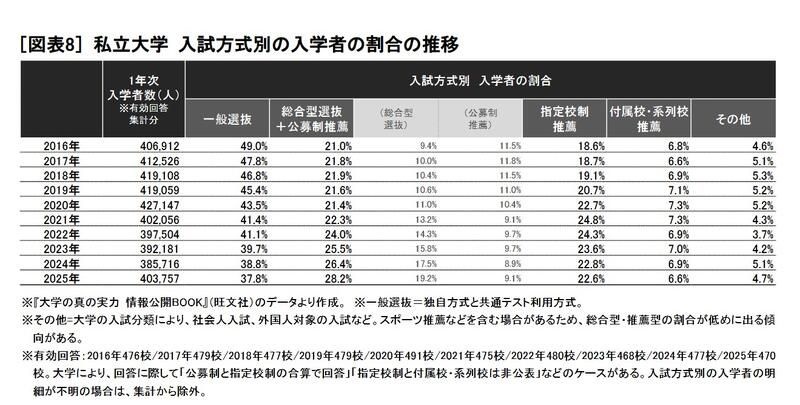 旺文社教育情報センターは2025年11月11日、2025年度私立大学入試分析をWebサイトに掲載した。私大入試は、一般選抜の志願者が増えたものの入学者に占める割合は低下。公募制や指定校制、付属校・系列校を含めた「総合型・推薦型」の入学者が全体の57.4%を占めた。