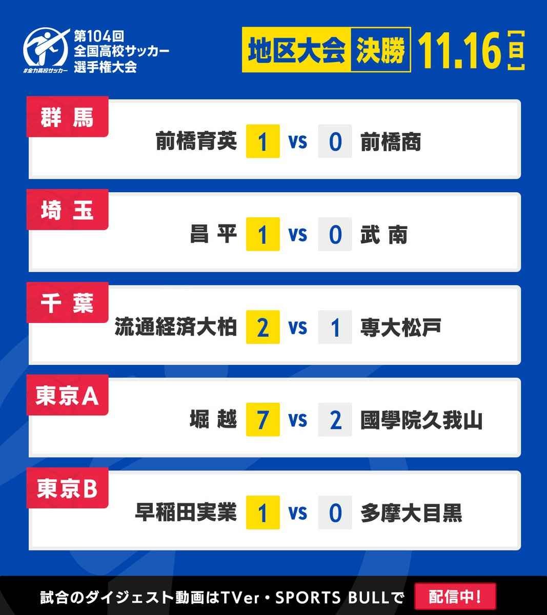 11月16日、第104回全国高校サッカー選手権予選は各地区で決勝が行われ