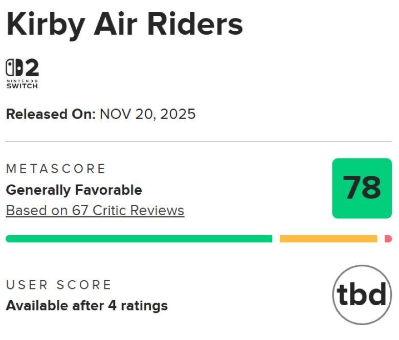 - 任天堂のゲームはメタスコアいつもこんなもんだろ