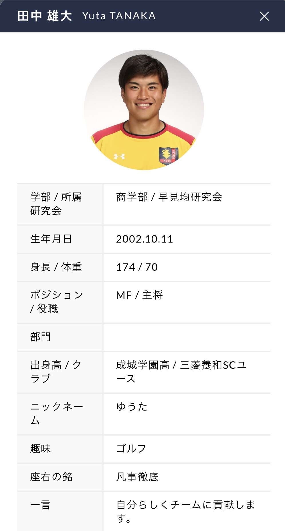 横浜F・マリノスへの来季加入が内定している慶應義塾大学のMF田中雄大(4年、成城学園高校/三菱養和SCユース)。