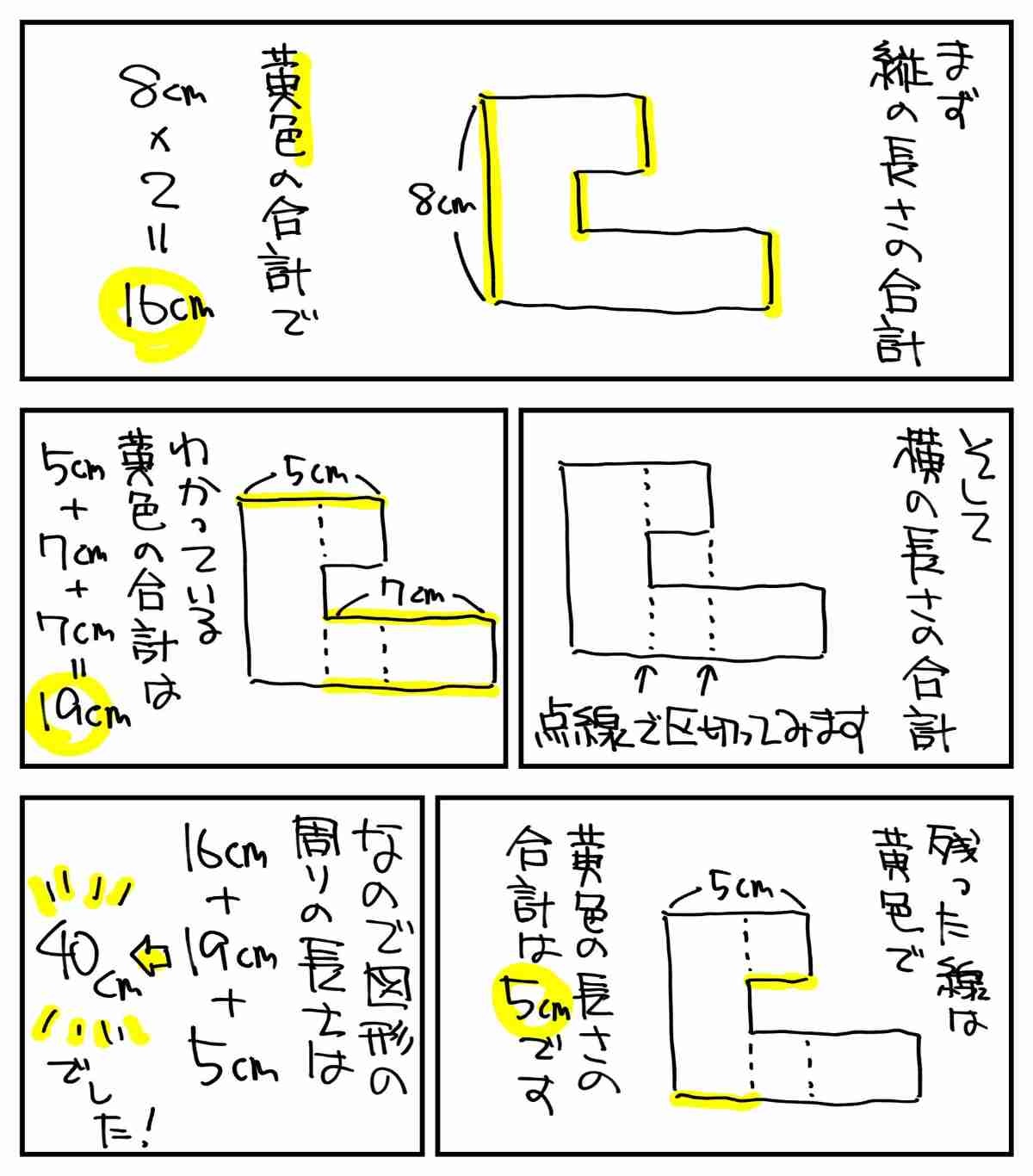 - 周の長さだけ考えると8×12cmの長方形と変わらないじゃん