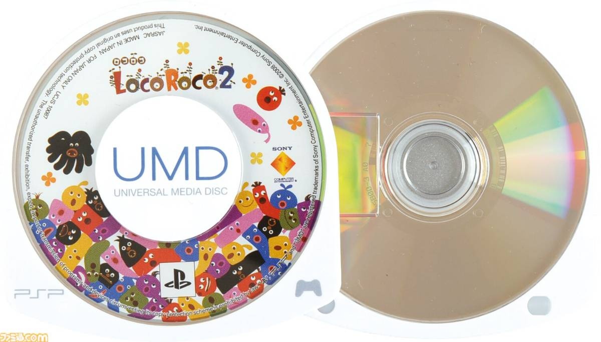 ソニーの最大のヒット商品は何か?と聞かれたら、「ウォークマン」と答える人が多いだろう。SCEは当初、PSPを「21世紀のウォークマン」として位置付け、単なる携帯型ゲーム機を超えたマルチメディアプレイヤーとしてアピールしていた。あくまで携帯型ゲーム機として登場したニンテンドーDSとは、目指す地点が違っていたのだ。PSPの最大の特徴は、ソニーが開発したUMD(Univesal Media Disc)と呼ばれる光ディスクをソフトの媒体として採用したことだ。UMDは、その名前の通り、さまざまなメディアを格納するための光ディスクとして規格化され、「UMD Audio」や「UMD Video」といった音楽や映像のためのプロファイルも規定されている。ディスクの直径は60mmで、記憶容量は1.8GBである。ディスクがカートリッジに収められているため、記録面面に傷などが付きにくく、気軽に扱える。ただし、コストダウンのためMDやMOのような保護シャッターはない。