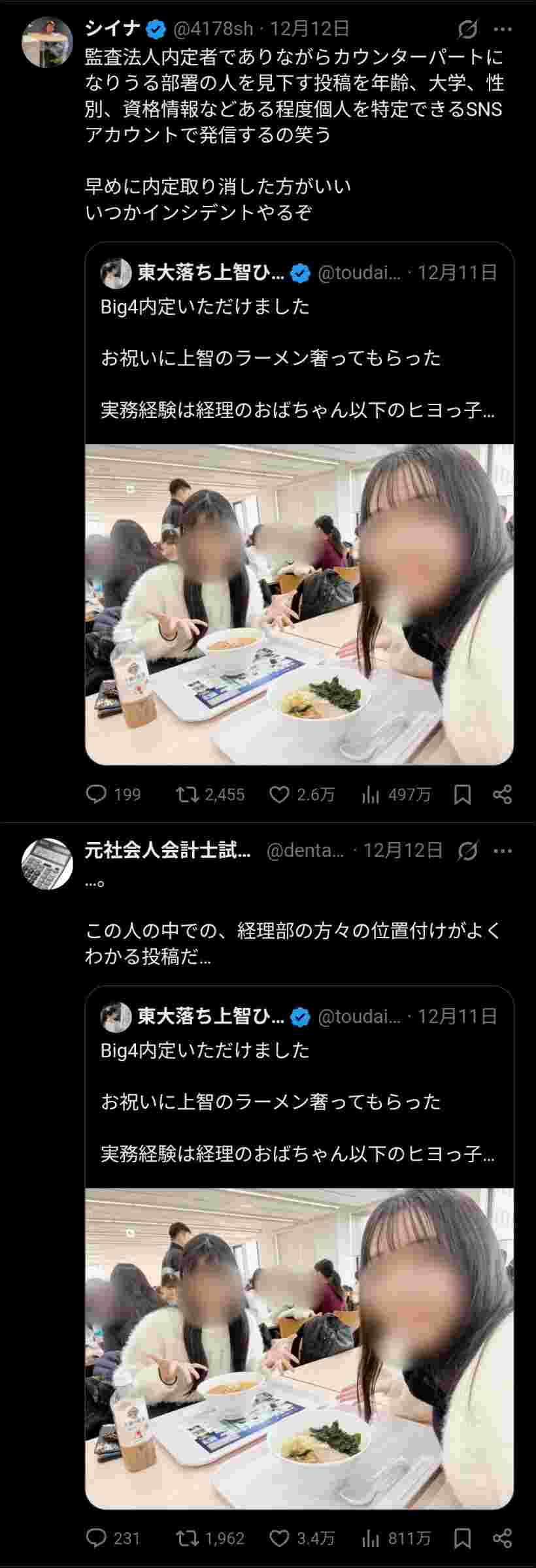 公認会計士現役合格しBIG4内定もらった美人上智大生が経理オバを馬鹿にしてると炎上!するも、これ炎上させたい奴が雑魚すぎね?と話題