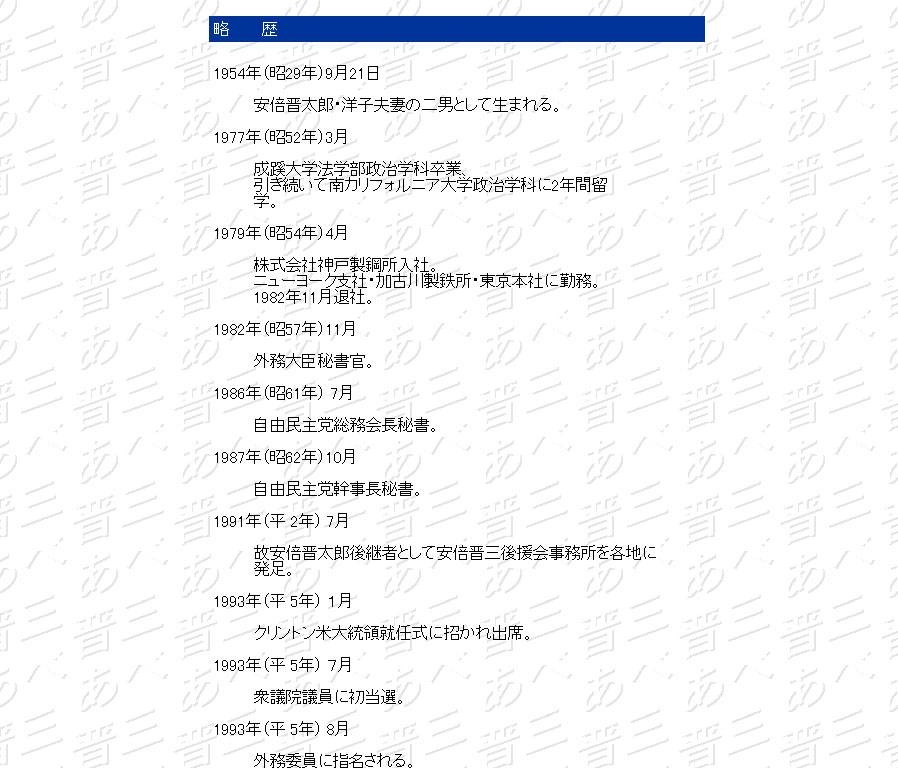 まずは日本のリーダーである安倍晋三首相だ。かつての公式ホームページには、1977年「成蹊大学法学部政治学科卒業、引き続いて南カリフォルニア大学政治学科に2年間留学」から1979年「株式会社神戸製鋼所入社」と記載されていたが、現在の公式ホームページには、1977年「成蹊大学法学部政治学科卒業」から1979年「株式会社神戸製鋼所入社」となっており、南カリフォルニア大学政治学科に2年間留学という海外での経験が一切削除されている。